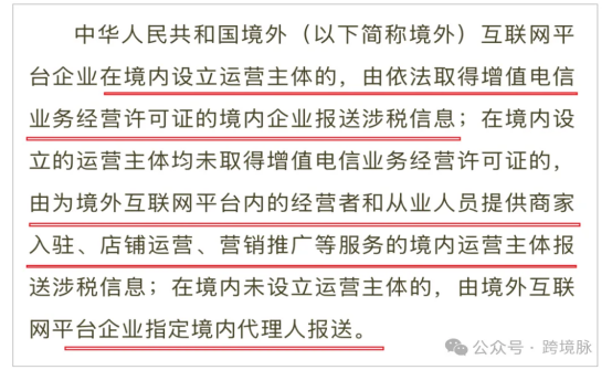 总而言之,不管在境内是否有经营主体,只要向境内卖家提供了“网络经营场所”等营利性服务,就要责任报送涉税信息。