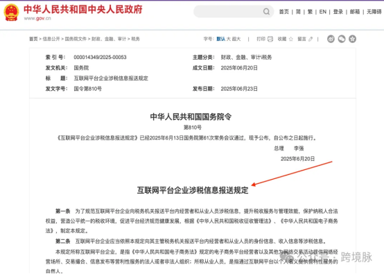 必须报送:跨境电商平台需在2025年10月起报送商家身份及收入数据;