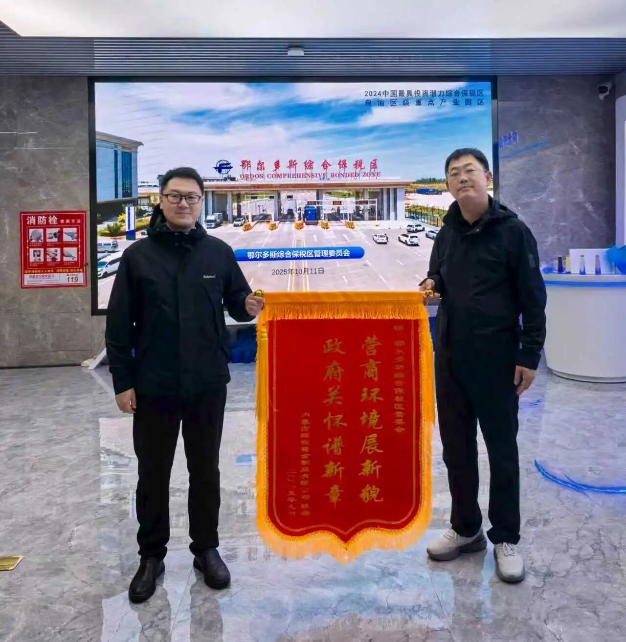 “营商环境展新貌,政府关怀谱新章”,10月11日,鄂尔多斯综保区贵金属保税加工企业赠予综保区管理委员会锦旗,对综保区营商环境工作给予高度认可与诚挚感谢。