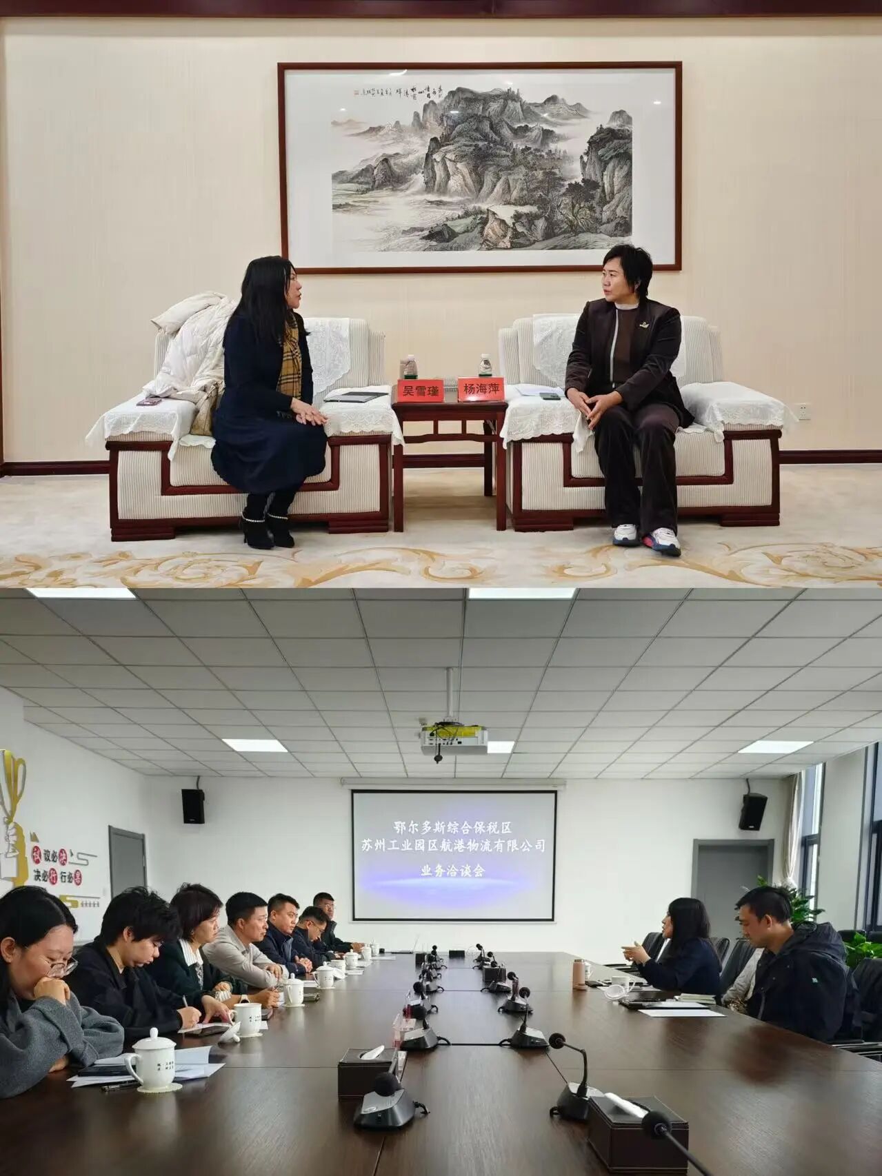 10月21日,苏州工业园区航港物流有限公司到综合保税区进行考察洽谈,园区党工委委员、管委会副主任、综合保税区管理办公室主任杨海萍及相关工作人员参加。与会双方就区港联动、综保区运营管理、跨境电商业务合作等内容进行了深入交流并达成合作意向。